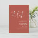 Uma tipografia moderna e uma cor tendenciosa de terracota para a sua papelaria de casamento: escolha esta simples e elegante suite de casamento. Totalmente personalizável: você pode alterar o plano de fundo e a cor do texto conforme desejar.