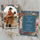 Amaze your guests with this elegant save the date featuring beautiful earthy flowers and dried leaves. Simply add your event details on this easy-to-use template and adorn this card with your favorite photo to make it a unique personalized one-of-a-kind save the date card.