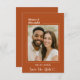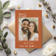 Announce your special day in style with this modern terracotta, burnt orange colored Save the Date card. Featuring your favorite photo framed by a minimalist ivory line border, it perfectly blends timeless elegance with a personal touch. The handwritten script adds a romantic detail, while the clean layout keeps the design contemporary and easy to customize.