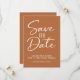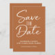 Casamento Salve o cartão de data em uma cor de ferrugem e design minimalista. Este convite para salvar a data tem o aspecto chique de uma loja de artigos de casamento com o estilo moderno de boho. Ele foi projetado para ajustado com seu tema ou estilo de casamento rústico ou boho. A tipografia limpa e manchada e a design minimalista ajudarão a espalhar a palavra sobre seu fabuloso primavera ou casamento outono. Personalizado com os nomes da noiva e do noivo, a data do casamento e a localização. A cor de fundo desta carta também é personalizável e pode ser criada para corresponder perfeitamente às cores do seu casamento.