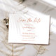 terracotta rústica cai num casamento único e elegante, exceto a data com caligrafia e tipografia clássicas.