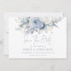 O Texto Azul das Modernas Florais Dusty Casamento com Código QR. Disponível digitalmente e impresso. Flores maravilhosas em azul e branco claros e um roteiro elegante em azul para Salvar a Data. O resto do texto que você pode personalizar facilmente com seus detalhes. Adicione seu código QR ao seu site de casamento na parte traseira ou exclua este e o texto na parte traseira, se não for necessário.