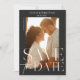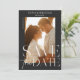 Casamento moderno Salve o cartão postal de modelo de data com texto tipográfico de sobreposição de tendência. Modelo apresenta uma foto vertical. A foto e o texto podem ser facilmente personalizados para uma única design única do seu dia especial.