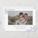 Este convite de casamento moderno apresenta uma elegante fronteira geométrica, folhas de eucalipto azuis empoeiradas e letra de roteiro romântica. Substitua a foto no verso pela sua. Veja outros itens na coleção "Blue Eucalyptus".