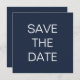 Simples Marinho Escuro de Texto ou qualquer cor Quadrado de Casamento Salve a Data. A cor e o tipo da fonte podem ser alterados através do menu de edição. Você também pode alterar as cores do texto e do plano de fundo em ambos os lados, se desejar.