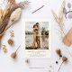 Anuncie seu dia especial com nosso Save the Date de casamento com texto simples e elegante e foto única Boho, perfeito para casais que buscam um design minimalista, porém clássico. Este cartão moderno apresenta uma bela tipografia e um delicado acento de flor em aquarela, criando um toque elegante e personalizado. Projetado com sua foto favorita, este cartão simples e atemporal é ideal para casamentos com tema boho ou contemporâneos. Se você está procurando por um clima rústico ou moderno, esses convites de save the date de casamento se encaixam perfeitamente na sua coleção de papelaria de casamento, tornando seu anúncio inesquecível.