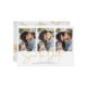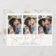 Manuscrito Salvar a Data Dourada Múltipla Cartão com fotos Marble em uma fonte elegante e que evoca um toque romântico manuscrito. Na parte de trás há veias do estilo folha de ouro modernas correndo através de mármore clássico. Projetado para usar três de suas fotos favoritas para personalização adicional. Adicione facilmente seus nomes e datas para um design verdadeiramente personalizado. Entre em contato conosco em cedarandstring@gmail.com se precisar de assistência com o design ou produtos correspondentes.