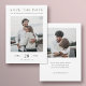 Este simples e elegante casamento fotográfico moderno salve a data, o modelo de cartão plano apresenta seus nomes e detalhes em preto. Ele parece excelente com cantos afiados ou arredondados, tente ambos os modos de edição para ver qual é que o agarra! A cor do texto padrão em ambos os lados é preto, exceto o texto SAVE THE DATE acima da foto na frente, que destacamos em uma elegante sombra escura de verde. As linhas verticais na frente e a linha horizontal na parte traseira são um preto ligeiramente suavizado. Você pode optar por alterar a fonte, a pontuação ou a cor usada para vários elementos de texto ou para essas linhas na frente e/ou no verso. Por exemplo, você pode optar por dar uma cor diferente para SALVAR A DATA ou outro texto, ou alterar o texto SALVAR A DATA para SALVAR NOSSA DATA ou algo diferente, Você pode optar por excluir algo ou alterar um campo de texto inteiramente com uma mensagem diferente. O plano de fundo em ambos os lados é definido como transparente para permitir que a cor do papel sirva simplesmente como o tom base, mas você pode editá-lo e escolher uma cor em um ou em ambos os lados, se preferir. Adicionamos alguns exemplos de texto no verso para que você edite de acordo com suas necessidades. Em vez de digitar o seu próprio endereço no website do casamento, você pode decidir excluir nosso endereço de exemplo no site e a linha acima dele sem substituir essas partes do design. E em vez de editar nosso exemplo de texto no verso com sua própria mensagem, você pode simplesmente excluir todo esse texto e deixar o verso do vazio do cartão, exceto sua foto, talvez para escrever sua própria mensagem mais tarde, ou para enviar sem nenhum texto no verso. Você também pode excluir nossa foto de amostra sem substituí-la se não quiser adicionar uma segunda foto além da foto na frente. O tipo de papel padrão, matte, tem um calor suave e resiste a manobras, então é uma escolha excelente para escrevendo sua própria mensagem. Você pode editar isso e escolher semirbrilho ou fazer upgrade para outro tipo de papel. Em qualquer caso, lembre-se de apagar todo o nosso texto de amostra em ambos os lados, bem como as nossas fotografias de exemplo. Personalize este na moda moderno casamento de duas fotos, salve o modelo de cartão simples de data com as ferramentas intuitivas de edição, suas fotos favoritas e sua inspiração e torne-o exclusivamente seu!