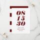 Tipografia de Data Vermelha Moderna Salva o Anúncio de Data | Uma placa plana personalizável, com exceção da data, com tipografia em negrito e minimalista. Este na moda vermelho e branco para salvar o cartão são perfeitos para qualquer tema de casamento e qualquer estação.