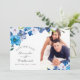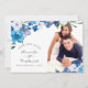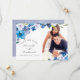 Elegantes tons pastel de cartões de foto de casamento floral azul para salvar a data, projetados para serem personalizados rápida e facilmente de acordo com os detalhes do seu evento.