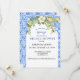Ela Encontrou Seu Amor: O tema de celebração de casamento com limão é ideal para um casamento de verão. Frutas cítricas, refrescantes e frias, sempre fazem belas apresentações e refrescos. A Coleção de Limões de Jenny combina limões pintados com estilo e azulejos azuis mediterrâneos. Os azulejos neste design formam uma moldura azul. É realçado por uma fina moldura dourada.