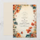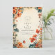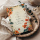 Celebre seu dia especial com este romântico design de outono com flores à direita de aquarela em tons cor de laranja quente. Com um fundo de colheita suave e detalhes botânicos, é perfeito para um elegante casamento de outono. Todo texto é totalmente personalizável.