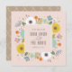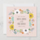 Inspirado em pacotes de sementes de flores, este cartão de salvar a data apresenta uma borda de flores mistas desenhadas à mão.