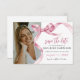Elevate your graduation celebration with our chic and trendy graduation save the date cards. Sporting a sophisticated watercolor pink ribbon tied into a bow, and your favorite photo, these invites eloquently merge style and elegance. Our easy-on-the-fingers personalization feature makes it a joy to invite your loved ones. Plus, digital download option available for those who love a good blend of modern and traditional.