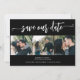 O minimalista elegante guião de caligrafia moderna, preto e branco, com cerimônia de casamento, salve o cartão de encontro com uma colagem de 3 fotos. ++++++++++ Adequado para qualquer estação e tema. +++++++++ Fácil de personalizar com as suas imagens e detalhes!