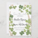 Design simples e moderno com folhas de trevo verde da primavera com texto personalizável. Personalize o modelo com os detalhes do seu casamento, fontes, etc.
