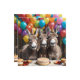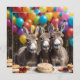 Foto De Celebração De Seu Aniversário Com Bolo, Balões E Navios a vapor São Três Tripletes De Donkey.