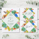 Um belo e colorido Cartão Guarde Datas com uma coroa tropical incluindo lindas flores cor-de-rosa, folhas verdes e azuis, e pássaros exóticos ao redor de uma foto que você pode mudar com sua própria, do menu Personalizar, assim como do texto. Uma maneira simples e moderna, mas colorida, de anunciar sua data especial. Entre em contato comigo para obter ajuda ou produtos correspondentes.