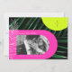 Arcos cor-de-rosa-neon e amarelos sobre o fundo da folha de palma escura, com um monograma vertical no topo à direita e uma folha de palma de arte de linha branca à esquerda. Personalize o texto branco e a foto.