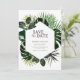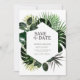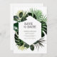 Este casamento tropical Salvar a data apresenta uma borda verde de cor d'água ousada. Escolha perfeita para quem planeja um casamento de destino. Edite o calendário no verso para refletir seu dia especial!