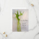 As Tulipas Brancas na Garrafa de Leite Casamento da primavera Salve o Anúncio da Data define um tom elegante para sua cerimônia e recepção de março, abril ou maio de primavera. Este elegante nupcial floral personalizado mantém o anúncio da data com uma fotografia floral de flores de tulipas brancas numa garrafa de leite de vidro vintage e de um véu de brasa branco com fundo branco. Disponível como um convite impresso para envio por correio ou como um download digital para fácil compartilhamento digital online.