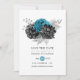Cartão de aviso de casamento com flores de turquesa (verde-azulado), preto e prata personalizável para os detalhes do seu evento.