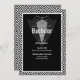 Festa de solteiro prateada, preta, guarde os convites de terno personalizados. Convites de despedida de solteiro de impressão branco e preto elegante. Veja o resto da coleção para ver uma bela decoração.