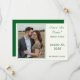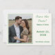 Design features the photo you provide as main design displayed against a pale-cream background and framed by an elegant, forest-green colored border. To the right of photo, your text containing heading, names and city & state of wedding are displayed in a matching forest-green font.