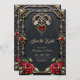 Um coração gótico impressionante desenhado num vermelho profundo e apaixonado. Esse coração simboliza o amor e a conexão do casal e é enquadrado por delicados embelezamentos de ouro. Esses sotaques dourados acrescentam um toque de luxo e sofisticação ao design. Asas de ouro majestosas se desdobram elegantemente do coração, adicionando um toque dinâmico ao design. As asas são detalhadas e exuberam a graça enquanto transmitem um senso de liberdade e infinidade - perfeito para o início de uma vida juntos.