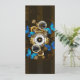 Composição do relógio de aço redondo com discagem numérica romana preta, decorado com engrenagens de ouro e latão, borboletas morfo azuis e lentes danificadas sobre fundo listrado castanho. Estilo Steampunk.