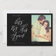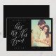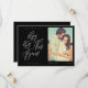 Às vezes as coisas mudam. Atualize seus convidados de casamento com a nova data do seu casamento com nosso cartão moderno de salvar a data. O design apresenta um layout simples e moderno com "Vamos tentar isso novamente" exibido em caligrafia moderna. Fundo preto simples com nome do casal, data do casamento, localização e foto.