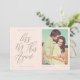 Às vezes as coisas mudam. Atualize seus convidados com a nova data do seu casamento com nosso cartão moderno de aviso de nova data. O design apresenta um layout simples e moderno com "Vamos tentar novamente" exibido em caligrafia moderna. Fundo simples de rosa discreto com nome do casal, data do casamento, local e foto.