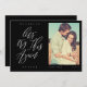 Às vezes as coisas mudam. Atualize seus convidados de casamento com a nova data do seu casamento com nosso cartão moderno de aviso prévio. O design apresenta um layout simples e moderno com "Vamos tentar novamente" exibido em caligrafia moderna. Fundo preto simples com nome do casal, data do casamento, local e foto.
