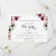 Anuncie sua nova data de casamento com este simples e elegante "Tente o Vamos novamente" Salve o cartão de data. Design com uma frase deslumbrante de "tentativa de Vamos novamente" em blocos modernos e caligrafia escrita à mão. Formas finas de canto floral com seus detalhes em burgundy de bagas, blush, creme e tons rosa. A frase no topo "o amor é paciente e vale a pena esperar" pode ser mudada para qualquer outra frase que você quiser ou até apagar. Adicione sua mensagem, data, hora, local e quaisquer outras informações extras que desejar. Volte com detalhes do canto floral que incluem o logotipo de "nova data" do na moda com a frase "nova data" na caligrafia moderna, sua data abaixo e nomes de cheio e noiva. Parte da nossa coleção "Romance Floral" com uma variedade de produtos de coordenação disponíveis. Visite a coleção completa clicando no link abaixo "Outros produtos desta coleção".