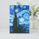 Cartão com a pintura a óleo de Vincent van Gogh na Noite Estrelada (1889). Inspirada pela sua estadia num asilo, a arte representa uma aldeia debaixo de um céu noturno de lua azul e amarela e estrelas. Um presente de excelente para fãs do Poste-impressionismo e da arte holandesa.