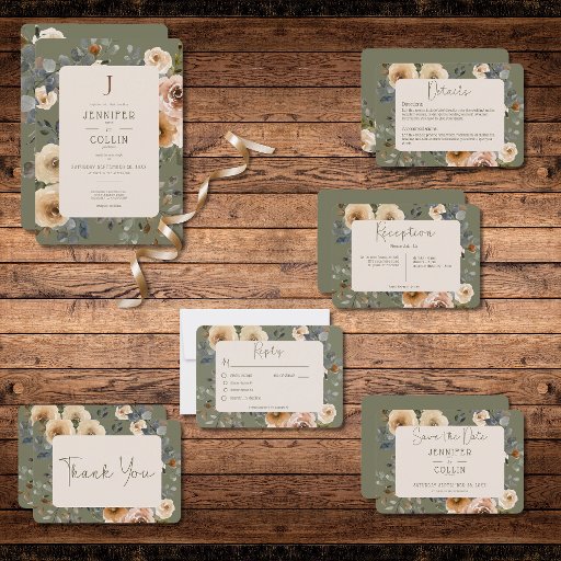 Vanilla White Boho Roses Sage Wedding SuiteCriado por Kathe Santillo