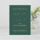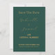 Este elegante cartão de data tem um script dourado que é aprimorado pelo fundo verde da floresta. Uma combinação de cores adorável se você vai se casar no Natal. Para editar o texto e alterar a foto, clique no botão personalizar.
