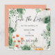 Um cartão floral moderno e belo, com uma adorável design de aquarela de flor selvagem e um esquema de cor branca, verde e laranja, acentuado por uma fonte de caligrafia contemporânea para um aspecto moderno, mas romântico.