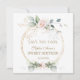 Design de cartão elegante com flores roxas cor-de-água, cor-de-rosa, folhas verdes douradas, uma falso cintilação dourada, trama redonda quebrada, tipografia elegante. Use a ferramenta Personalizar para adicionar suas informações. Veja, também, minha coleção de Quinceañera e 16 festas.