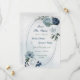 Bela botânica, salva o cartão de data com flores brancas, poeirentas, azuis e marinhos azuis com folhas verdes em uma moldura geométrica romântica. PARA MAIS PRODUTO CORRESPONDENTE, clique na coleção acima ou entre em contato comigo.
