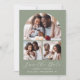 Este simples e minimalista Cartão Salvar a Data apresenta um arco de colagem de 3 fotos acima das palavras "Salvar a Data" em um elegante roteiro branco, seguido pelos nomes do casal, data do casamento e cidade em sans serif em um fundo verde sábio. Adicione uma quarta foto horizontal e uma mensagem mais detalhada no verso.