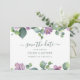 Escrita manual com roxo e verde para o eucalipto moderno, salve o cartão de anúncio para que sua família e amigos saibam sobre suas notícias interessantes. Personalize facilmente esta placa botânica verde clicando no botão "Personalizar" acima. Dica: O pacote de convites para o casamento também está disponível em nossa loja na coleção abaixo. Encontre seus itens para os dias que antecederam o casamento, como o convite para o casamento, rsvp, alojamento, informações do site e itens para o casamento, incluindo, mas não se limitando a, conjunto, pratos e muito mais da Unity Candle