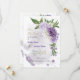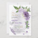 Flores roxas e brancas roxas e folhas verdes botânicas exceto data convite Os detalhes da brilha são simulados