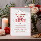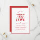 Um Save the Date ousado e minimalista com um monograma moderno, uma borda vermelha elegante e a mensagem sincera: