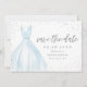Os cartões salve a data Elegante de Quinceanera apresentam um vestido azul-claro-aquarela com brilho cintilante falso prateado salvando o script de data, excelente para a doce festa de aniversário 15.