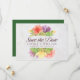 Este elegante cartão floral salva a data com flores vibrantes, com as palavras "salvar a data" em um script de tendência, tudo contra um fundo de mármore pálido na frente e um fundo de cor verde. Personalize esta placa substituindo o texto do espaço reservado na modelo para adicionar suas informações. Para obter mais opções, como alterar a fonte e seu tamanho/cor ou o espaçamento entre letras, clique no botão "Personalizar". *Observe que a Marca d'água do Zazzle que aparece na visualização de zoom NÃO aparecerá no produto impresso final. © Rosewood e Citrus