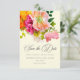 Set the tone for a joyful celebration with this vibrant summer floral photo save the date card design. Boasting yellow, orange, and pink ranunculus and lilies, it is ideal for a garden ceremony. This bright, modern aesthetic offers a high-end look that promises a day filled with sunshine and love. Created by Simply Farmhouse Press.