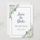Anuncie seu noivado e evento com nossa elegante tendência floral de aquarela Salve o anúncio de casamento da Data. O design apresenta um belo arranjo floral que inclui rosas brancas complementadas com flores em tons de azul, marrom e um toque de amarelo em verde suave. Personalize o design de eventos do partido com seus detalhes em letras azuis de tendência e script em um plano de fundo transparente que permita que sua escolha de papel seja totalmente apreciada na frente e no verso. Para obter resultados ideais, substitua os detalhes modernos do modelo por seus próprios guias, conforme indicado. Envie um email para invitationsuites@gmail.com com perguntas ou solicitações personalizadas.