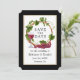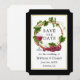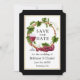 Uvas de Aquarela Elegante Modernas e Vinhas Ferro De Madeira Salva A Data Do Anúncio De Casamento - Fundo Preto com Quadro Dourado.
