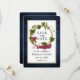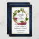Uvas de Aquarela Elegante Modernas e Vinhas Ferro De Madeira Salva A Data Do Anúncio De Casamento - Fundo Russo De Madeira Azul De País Com Quadro Dourado.